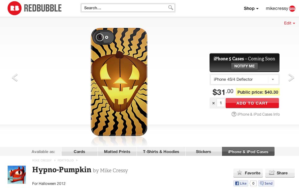 Here's the bigger version of the art for my Halloween iPhone/iPod case on both Zazzle and RedBubble. Buy your's today! :D
